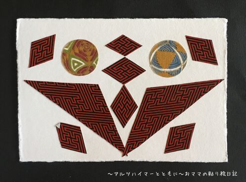 (2017年3月6日 アルツハイマー型認知症の診断から約10年1ヶ月) 「ほぅ〜。」これでしたか❗️ 貼り絵の材料は身の回りの何処に転がっているか分かりません。(笑) 要するに、おママの心の琴線に触れたら、何でも活かされるのです。 昨日の記事でも…