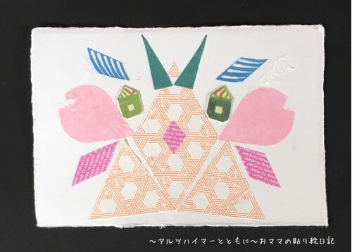 (2017年10月3日 アルツハイマー型認知症の診断から約10年8ヶ月 小津和紙の包装紙。歌舞伎座の花吹雪は大変薄い紙なので、左側は貼る時に一部ちぎれました。それもご愛嬌。青系のストライプは千代紙。他はよく分かりません。) *考えずに、インス…