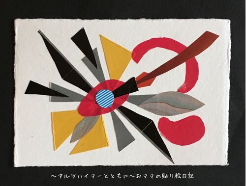 (2017年12月24日 アルツハイマー型認知症の診断から約10年10ヶ月) *謎は深まるばかり 上の貼り絵ですが…。 おママは全く何も意図していないのに…。 私の想像は止まる所知りません。 最初に見た時は戦国武将の兜に似ていると思いました。 2度…