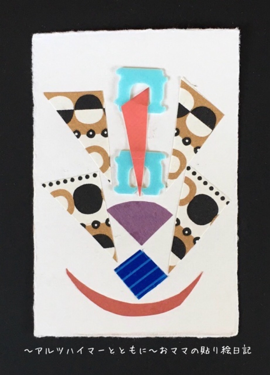 同時期にもっと綺麗な作品はあったと思います。でも、この貼り絵は必死に笑顔を作っているようにも見えて、当時の自分の心象に一番近いような気がしたのでしょう。私が激推しして選んだのだと思います。